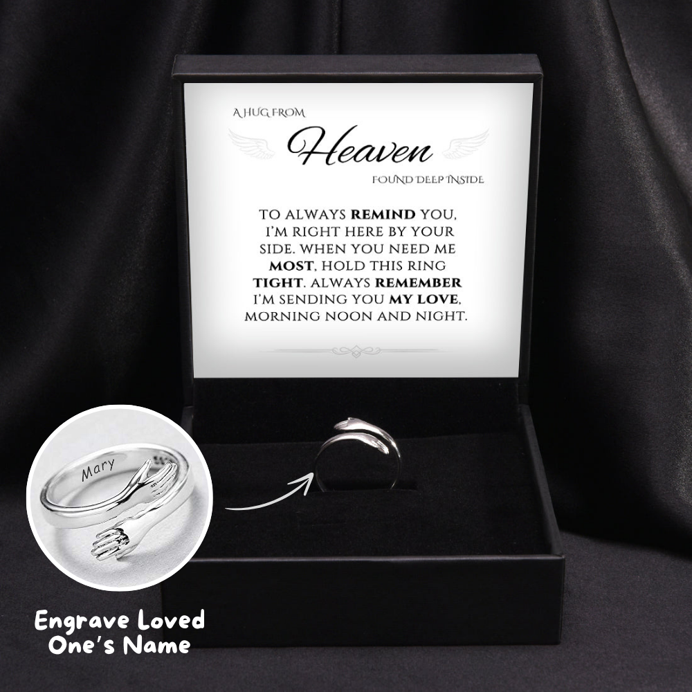 Lassen Sie diesen gravierten Umarmungsring als sanfte Erinnerung an ihre Liebe dienen. Es ist mehr als ein Geschenk - es ist eine Verbindung, die Trost und Nähe bringt.