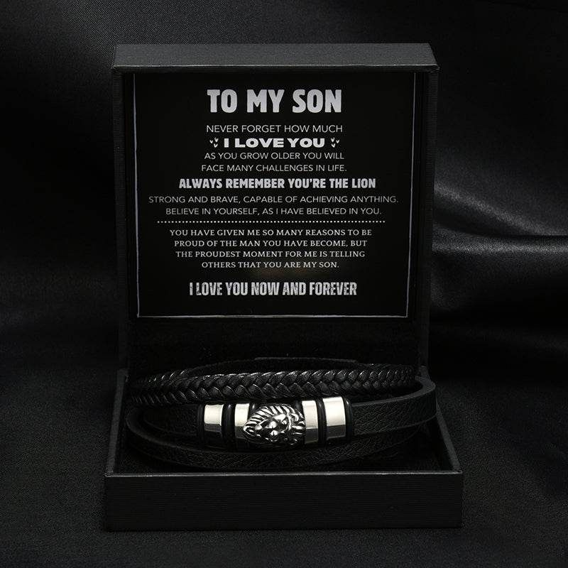 Lassen Sie Ihren Sohn wissen, wie viel er Ihnen bedeutet. Dieses besondere Geschenkset mit einem symbolischen Löwenarmband und einer herzlichen Botschaft wird sein Herz tief berühren. Es ist eine kraftvolle Art, deine unendliche Liebe auszudrücken.