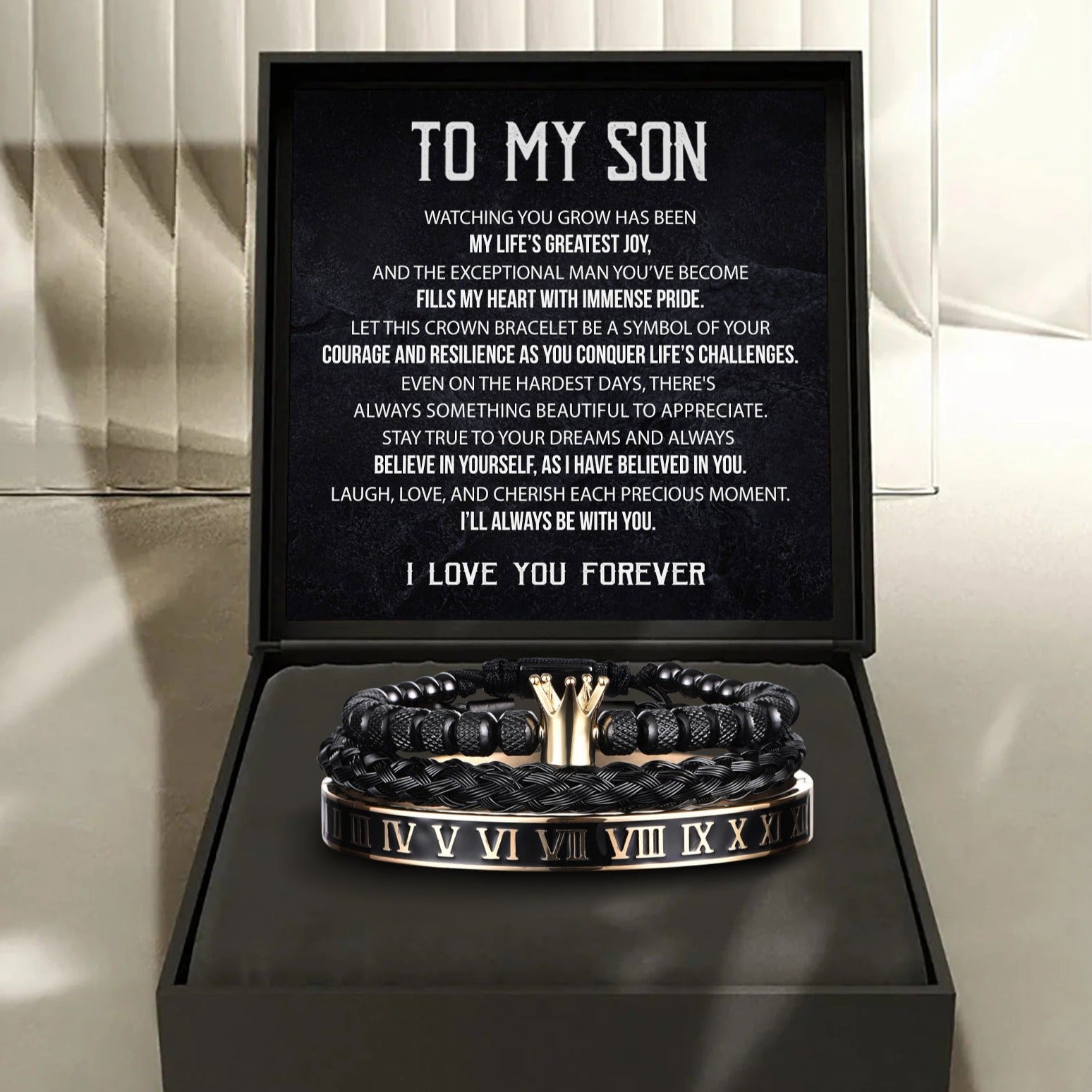 Display your affection for your son with our beautifully crafted bracelet, crowned to symbolize your son's achievements in life. The 3-stack design offers flexibility and added value, making this the ultimate gift any son will love. And remember, this isn't just one bracelet but three—an unbeatable value for a priceless gift.