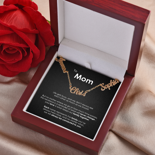Ella es quien ha hecho de tu casa un hogar. Este collar con nombre personalizado le permite llevar a cada uno de sus hijos cerca del corazón, como siempre ha hecho.