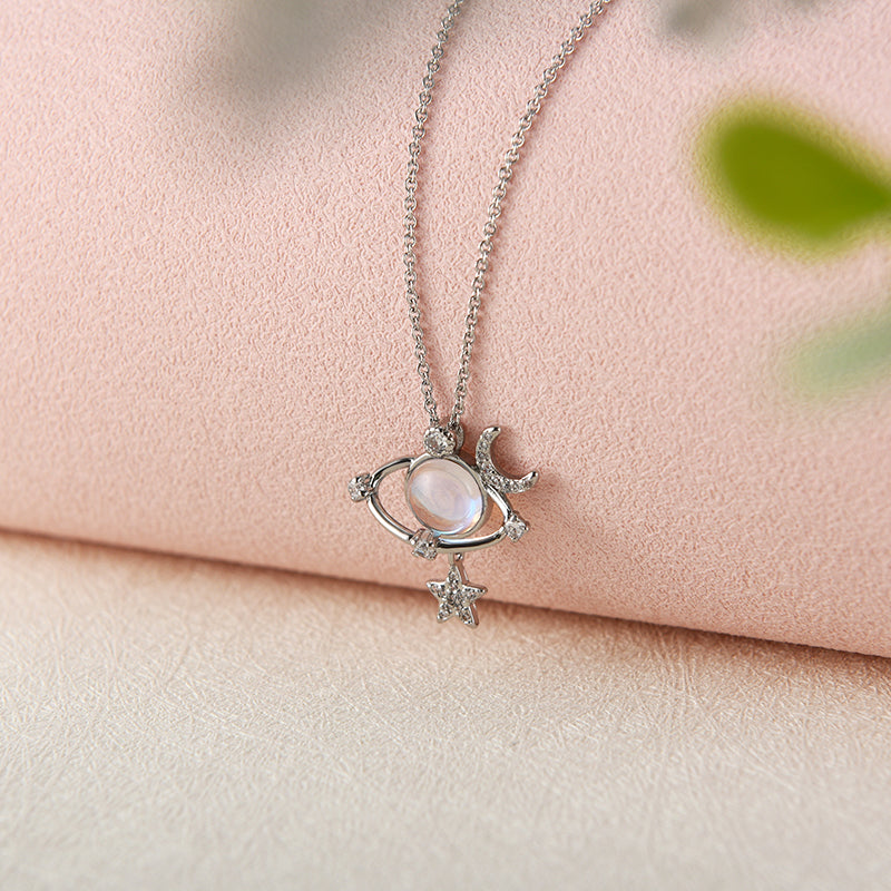 El collar Luna y Estrella es un impresionante homenaje a la belleza interior de tu hija. Es un brillante emblema de tu fe en su ilimitado potencial y en el brillante futuro que le espera.