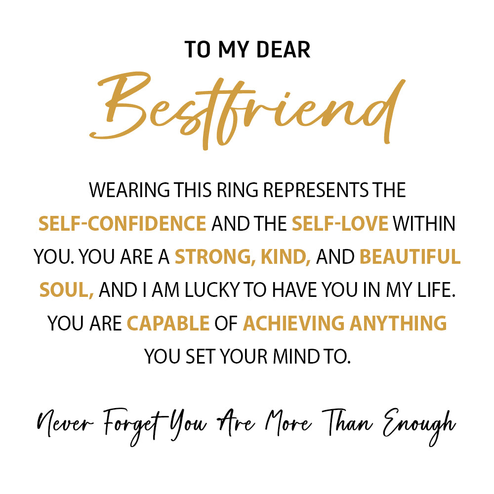 Diseñado con un poderoso mensaje para levantarla, este anillo sirve como recordatorio diario de que tu mejor amiga puede lograr cualquier cosa que se proponga.- Caja de regalo Luxury Style