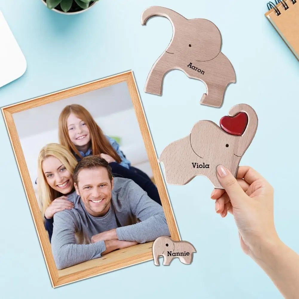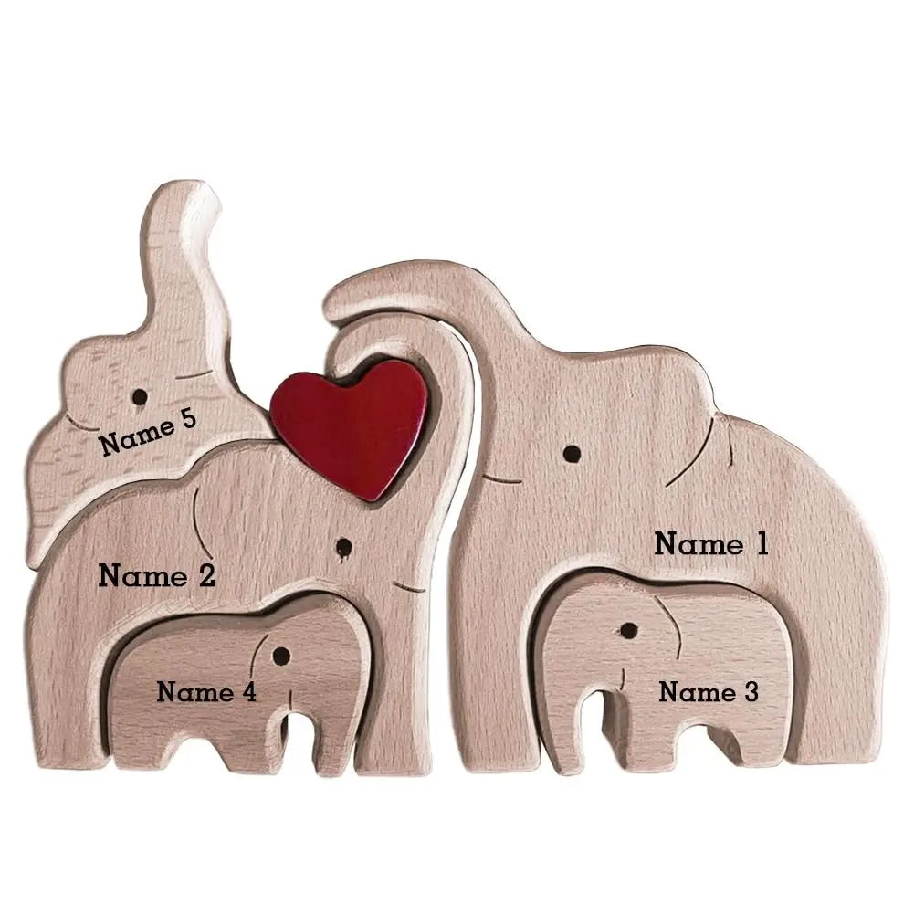 Cada elefante, grabado con el nombre de un miembro de la familia, se une en un cálido abrazo, creando un recuerdo duradero de vuestro vínculo inquebrantable.