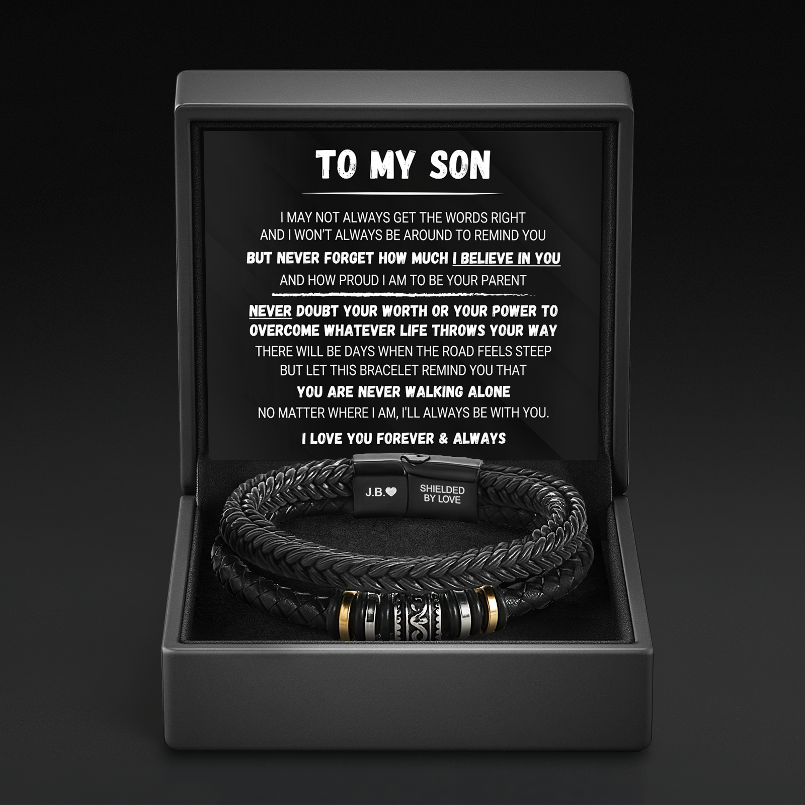 Esta pulsera no necesita decir mucho. Simplemente descansa en su muñeca, grabada con su nombre. Un recordatorio constante de que usted nunca deja de creer en él.