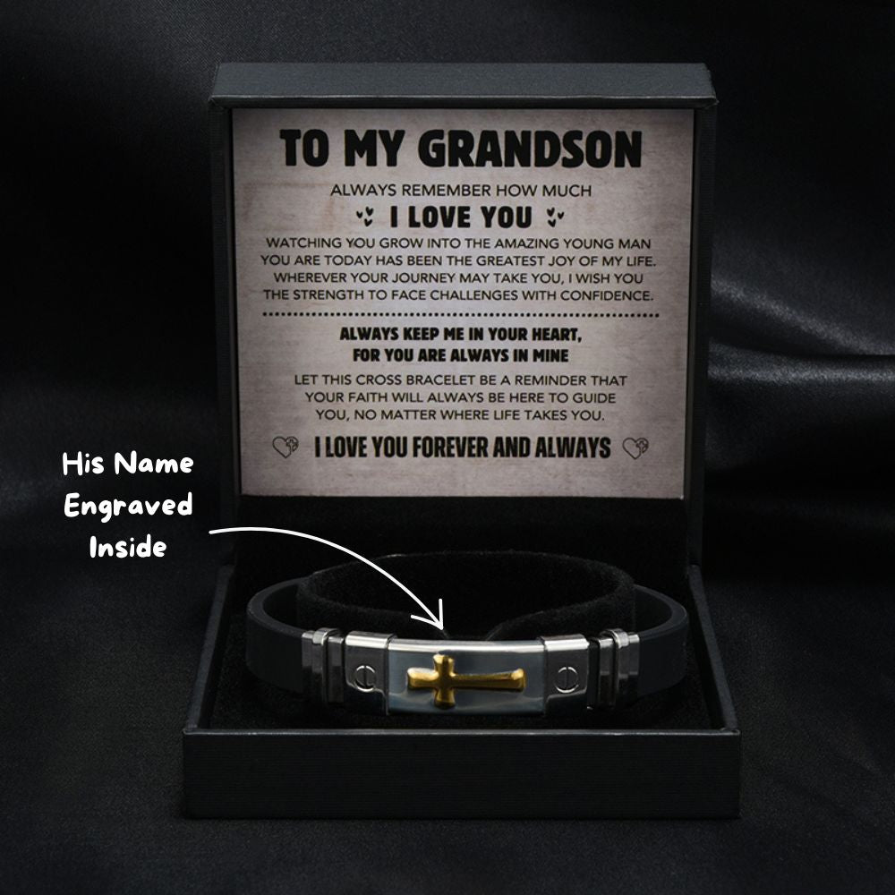 Chaque fois que votre petit-fils portera ce bracelet, il sentira votre amour et votre soutien l'entourer. C'est un rappel quotidien de votre affection indéfectible et de la foi qui le guide, peu importe où la vie le mène.