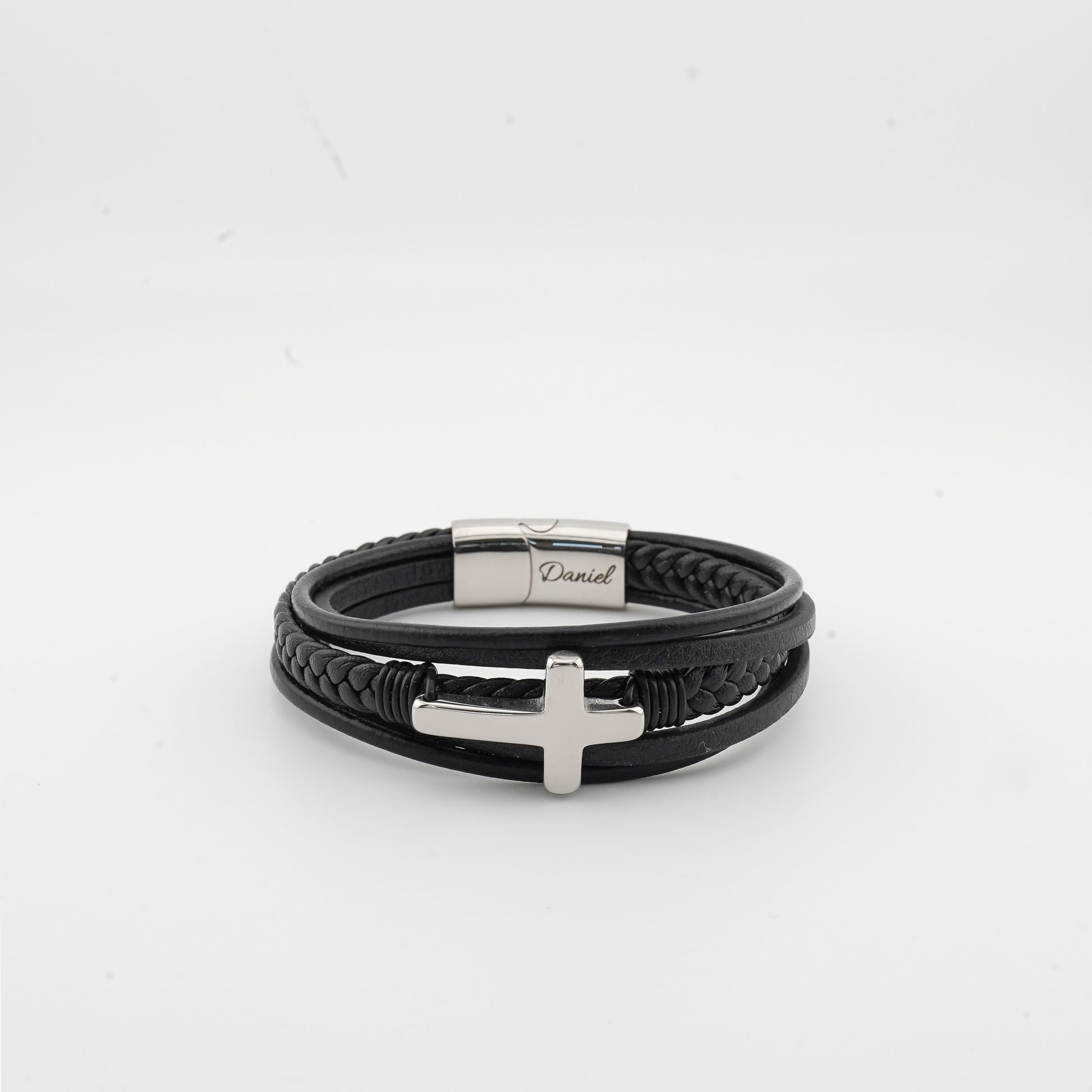 Offrez à votre fils un rappel significatif de votre amour et de votre foi partagée. Ce bracelet en forme de croix est plus qu'un simple bijou - c'est un lien quotidien avec la famille et la foi qu'il peut porter tous les jours.