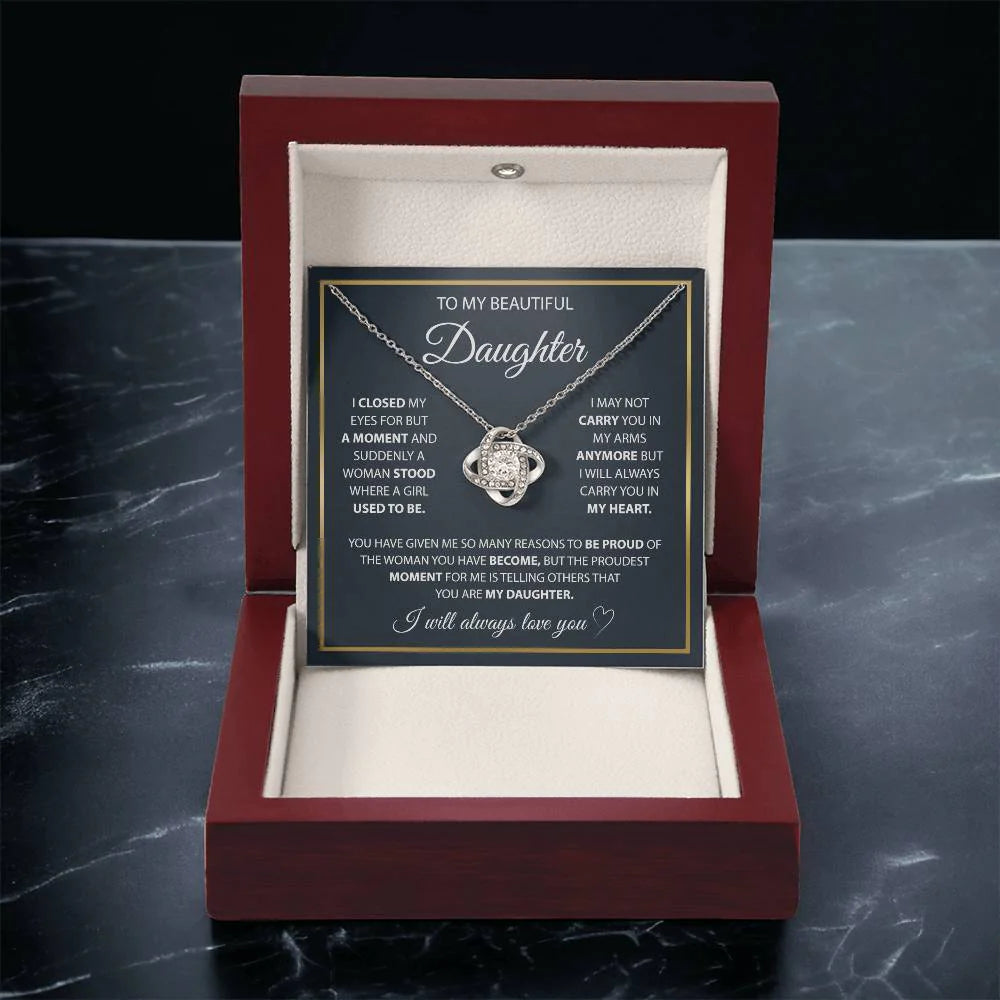 Ce n'est pas seulement un cadeau, c'est un souvenir précieux dans une boîte. Dans quelques années, elle regardera en arrière et se souviendra de l'amour qui l'accompagnait. Ce collier et cette carte lui rappelleront toujours votre promesse : "Je t'aime pour toujours".