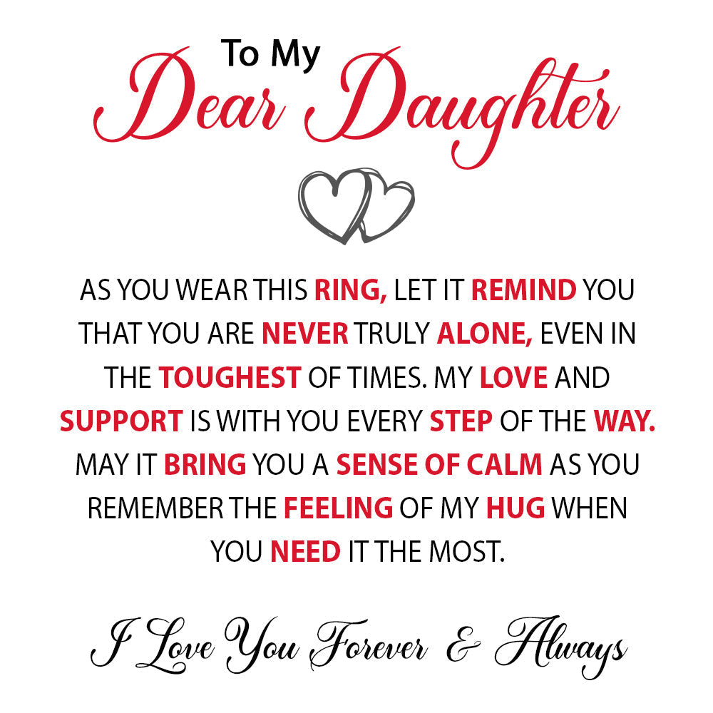 Le lien entre un parent et sa fille est irremplaçable. Il peut être difficile d'exprimer la profondeur de l'amour et de l'appréciation avec de simples mots. C'est pourquoi cette bague est le cadeau idéal que vous pouvez offrir à votre fille. Elle en dit plus que les mots, créant une expérience sentimentale dont votre fille se souviendra certainement pour le reste de sa vie.- Boîte cadeau de luxe