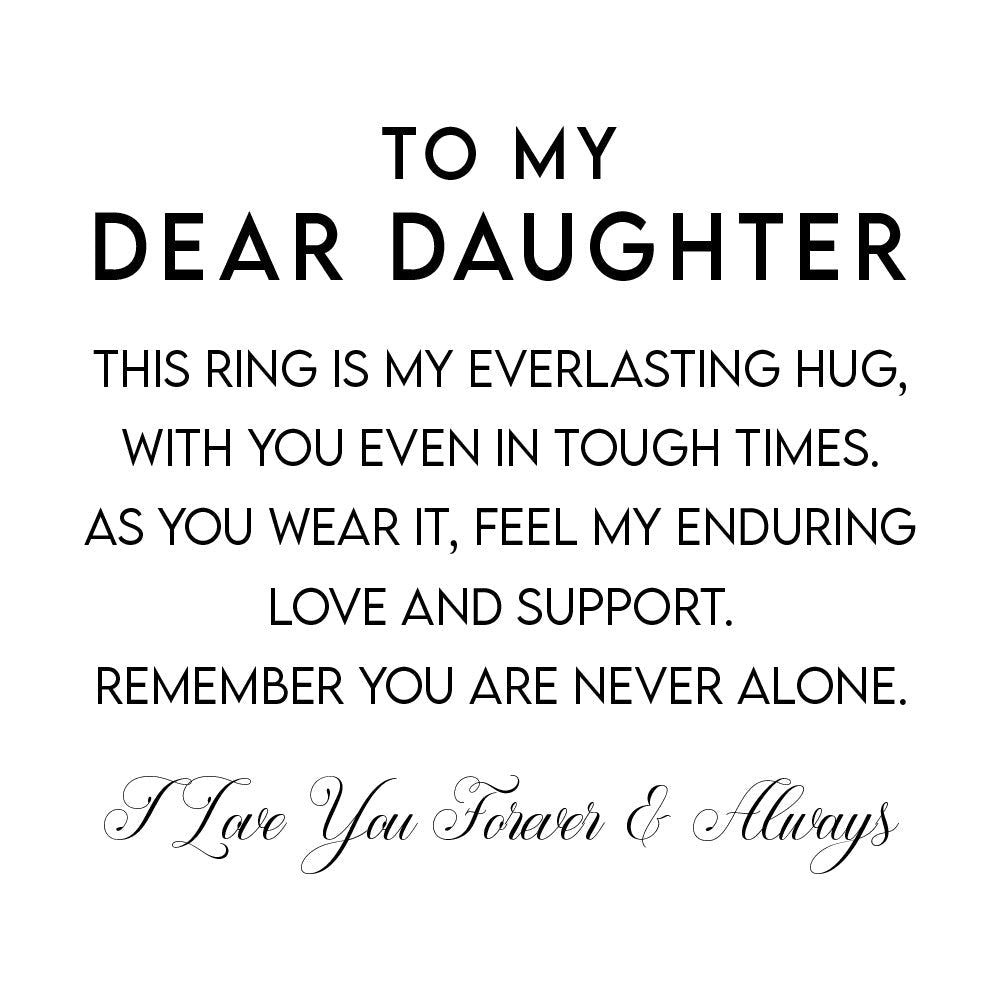Offrez à votre fille un câlin qu'elle pourra porter tous les jours avec une bague de câlin - conçue comme un rappel tangible de votre amour sans fin et du réconfort de votre étreinte. Un symbole de l'amour qui ne connaît pas la distance.