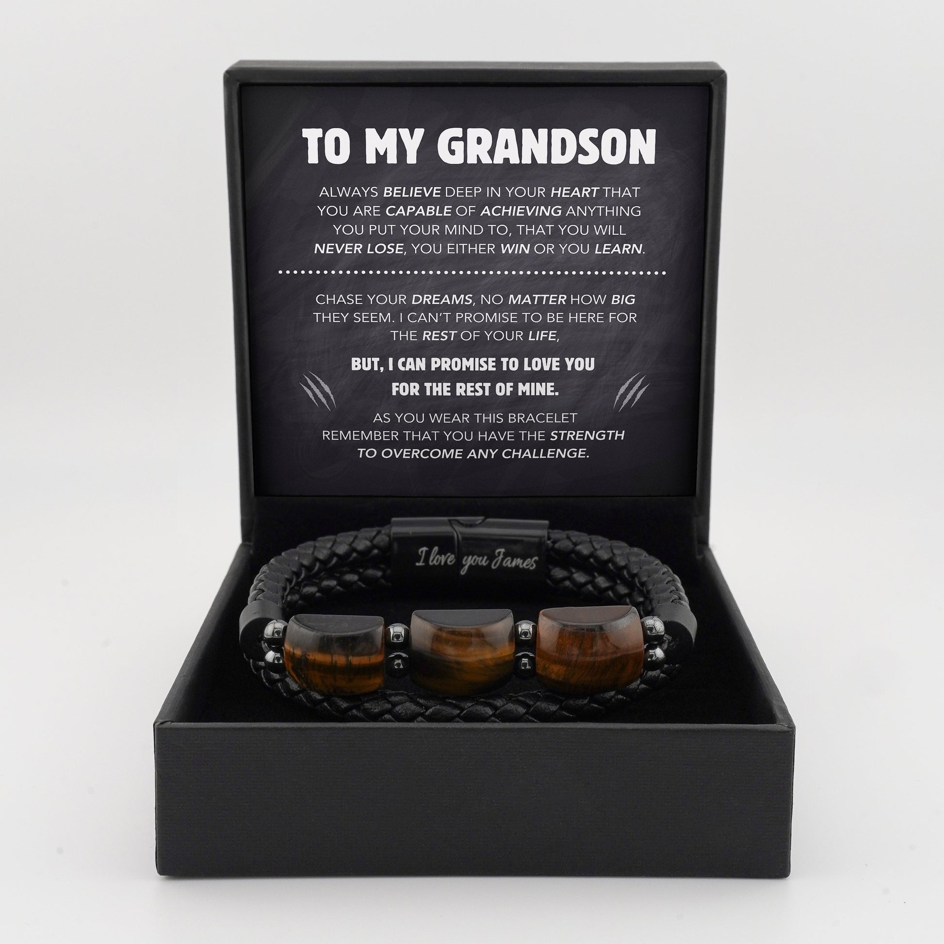 Offrez à votre petit-fils un moyen d'emporter votre amour avec lui, où qu'il aille. Ce bracelet est plus qu'un simple accessoire - c'est un lien constant entre vous deux.