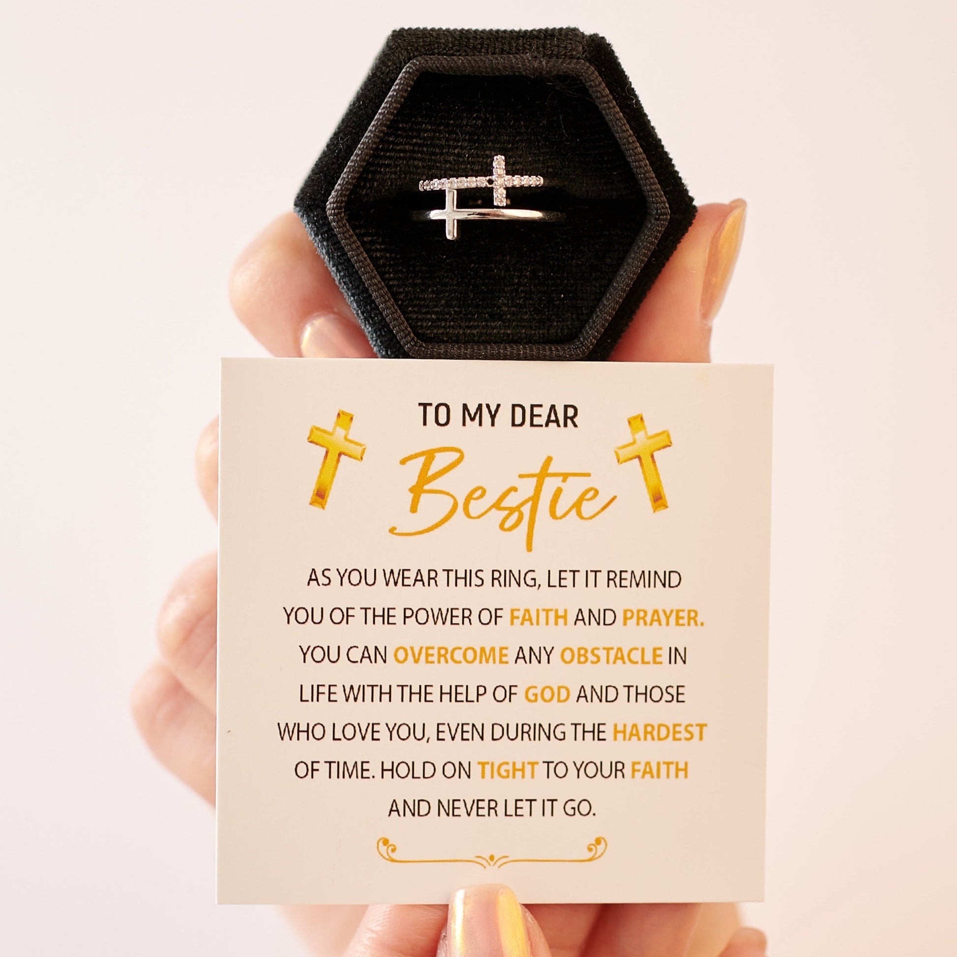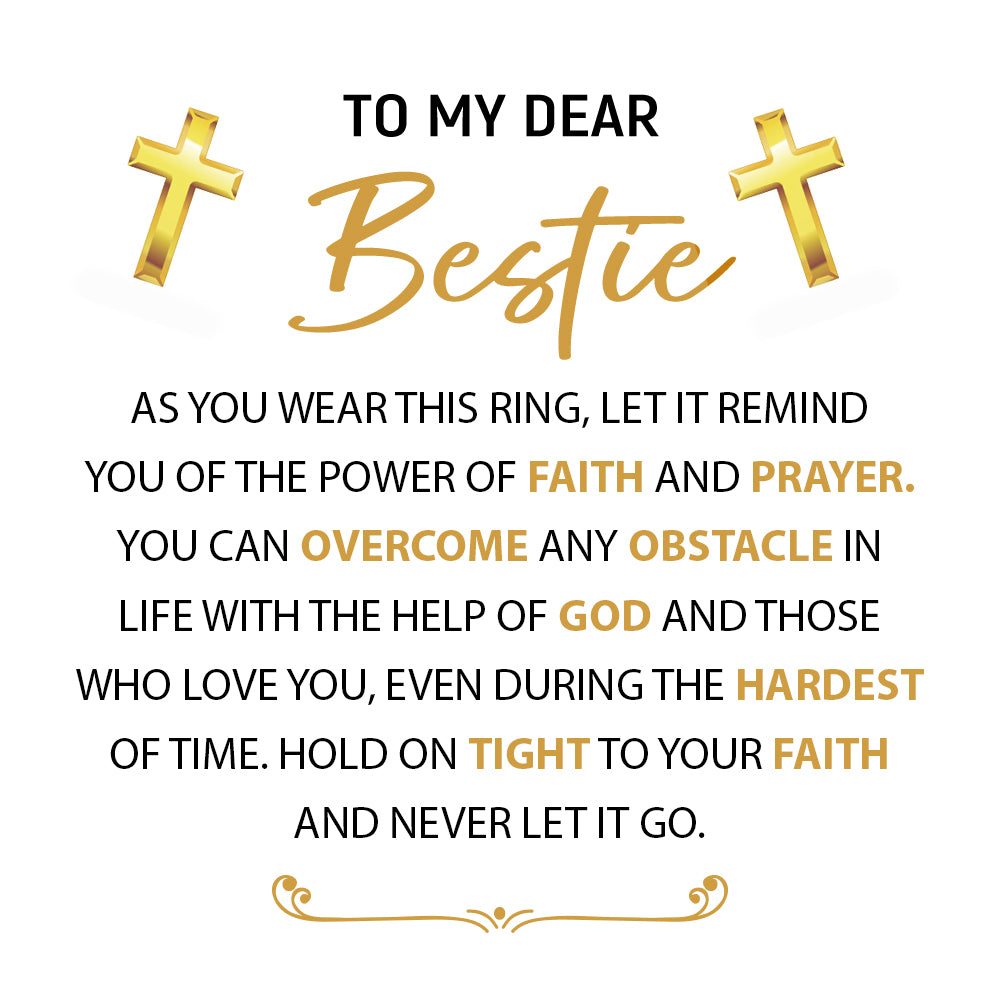 Strengthen your bestie's faith with this touching and inspiring ring. Its design is a symbol of the comfort and inspiration that her beliefs can provide during times of adversity.