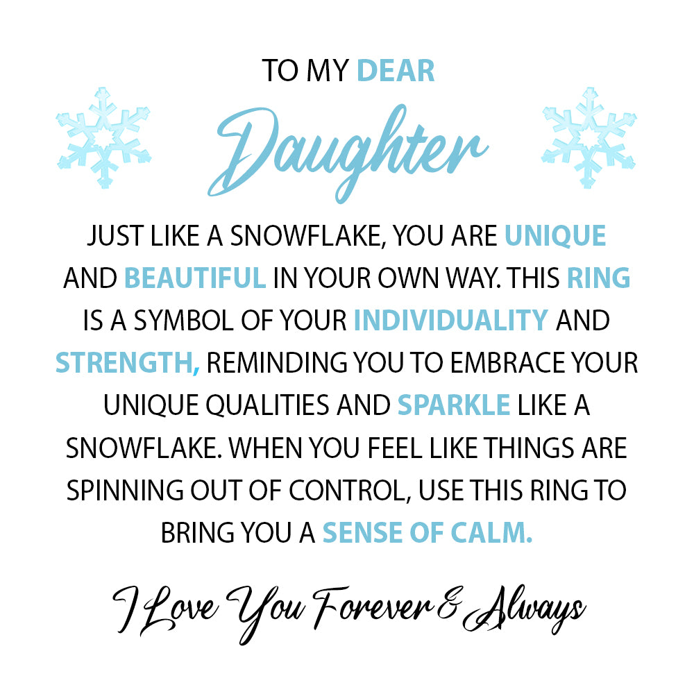 Gift your daughter a timeless snowflake ring, crafted with care. It's a symbol of sparkling beauty to show your endless love and support. A meaningful keepsake she'll treasure as time passes.